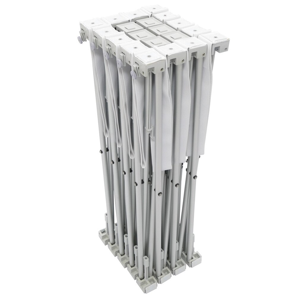 Disclaimer: To avoid frame damage upon collapsing, make sure to undo the hook and loop straps and to unlock the clips on the back of the frame.