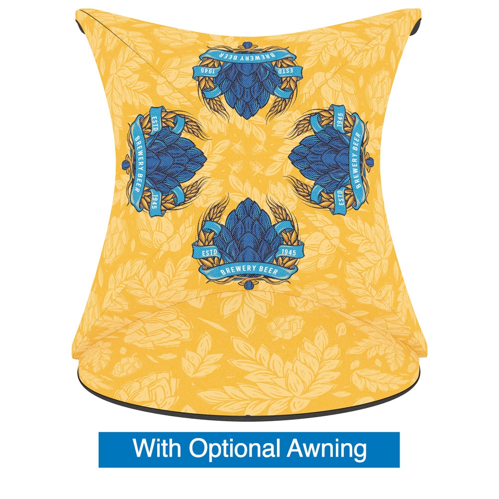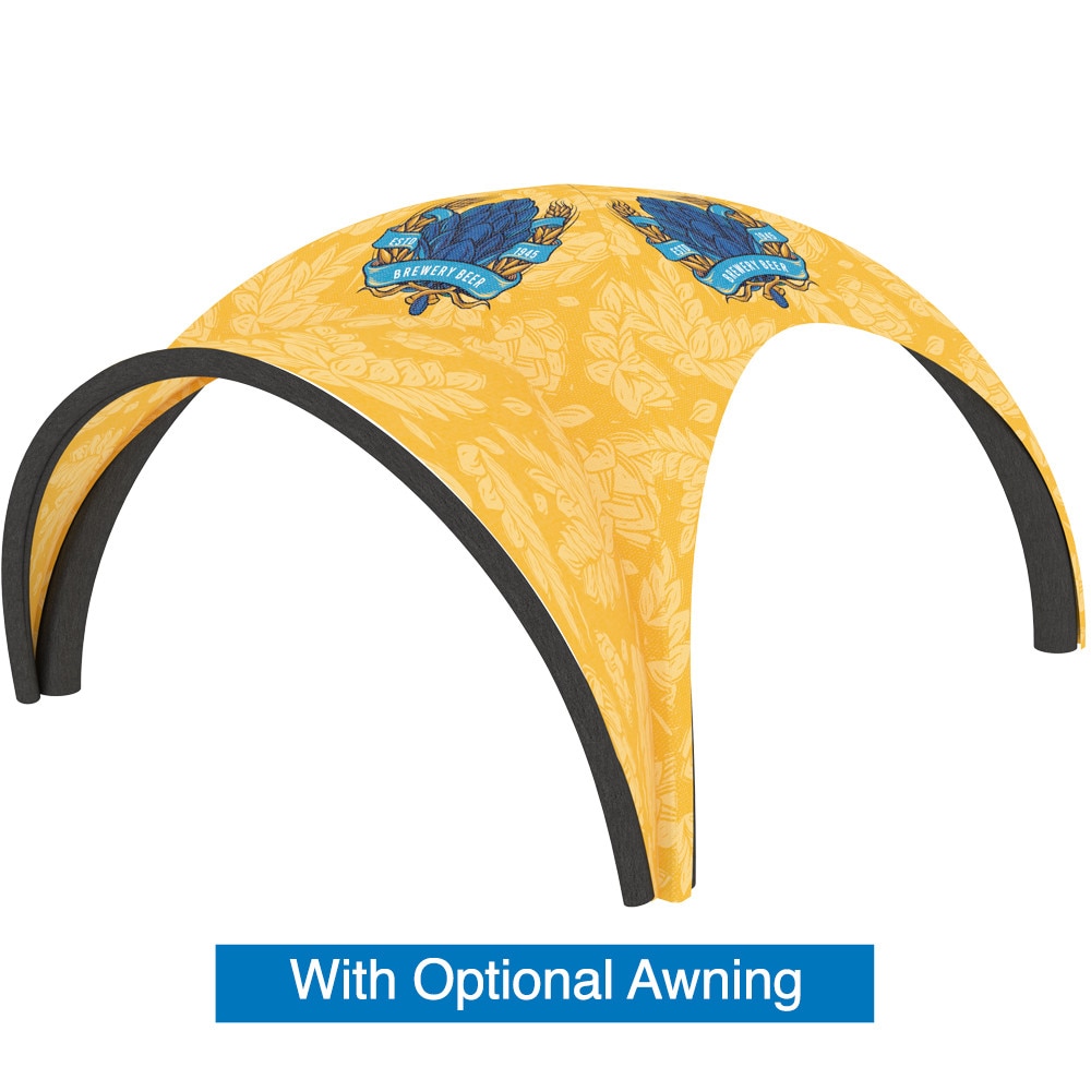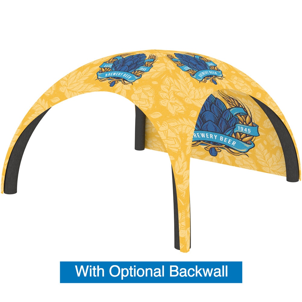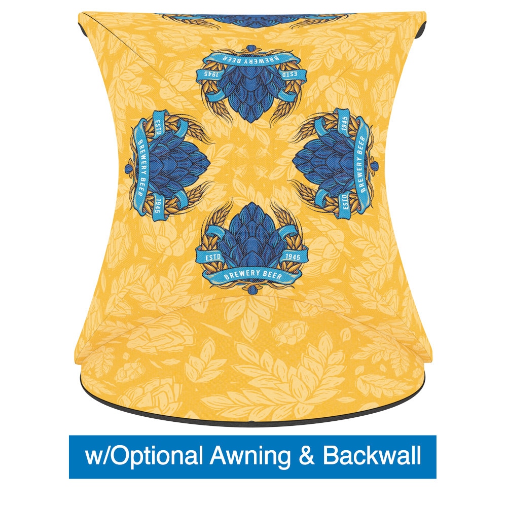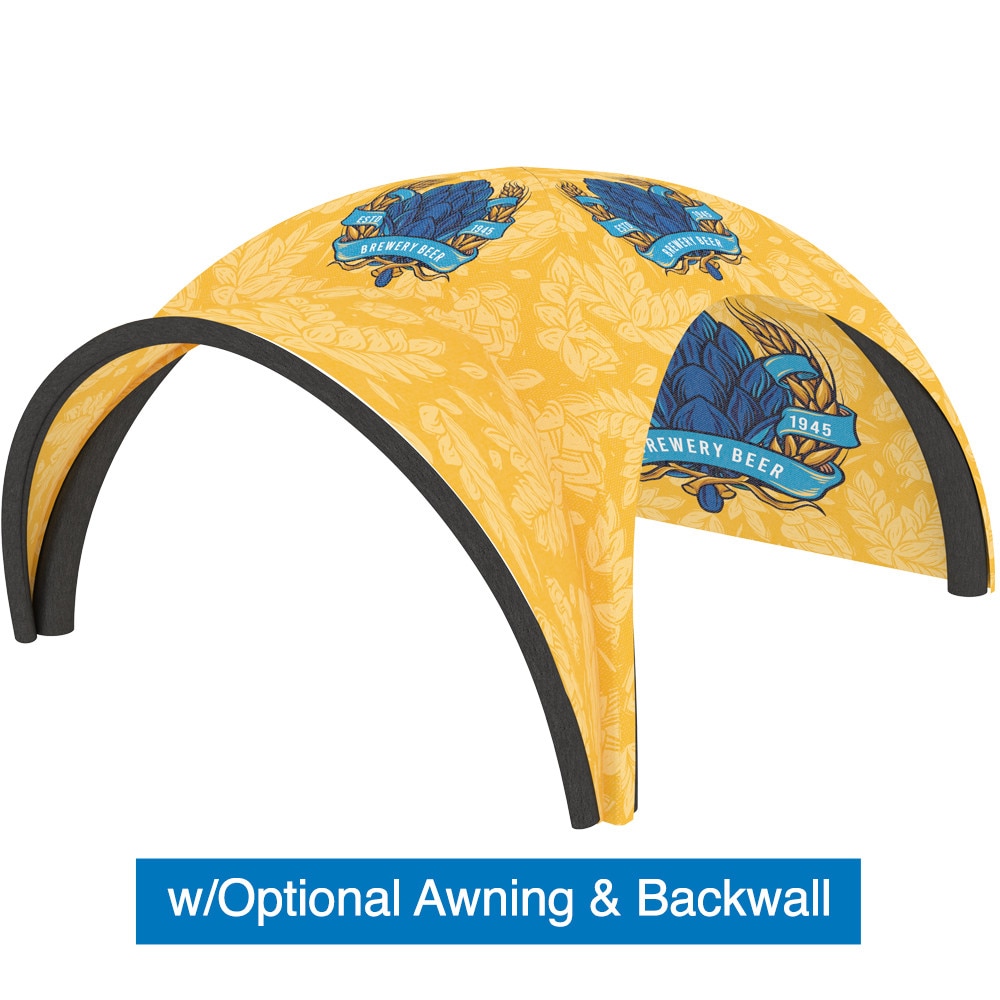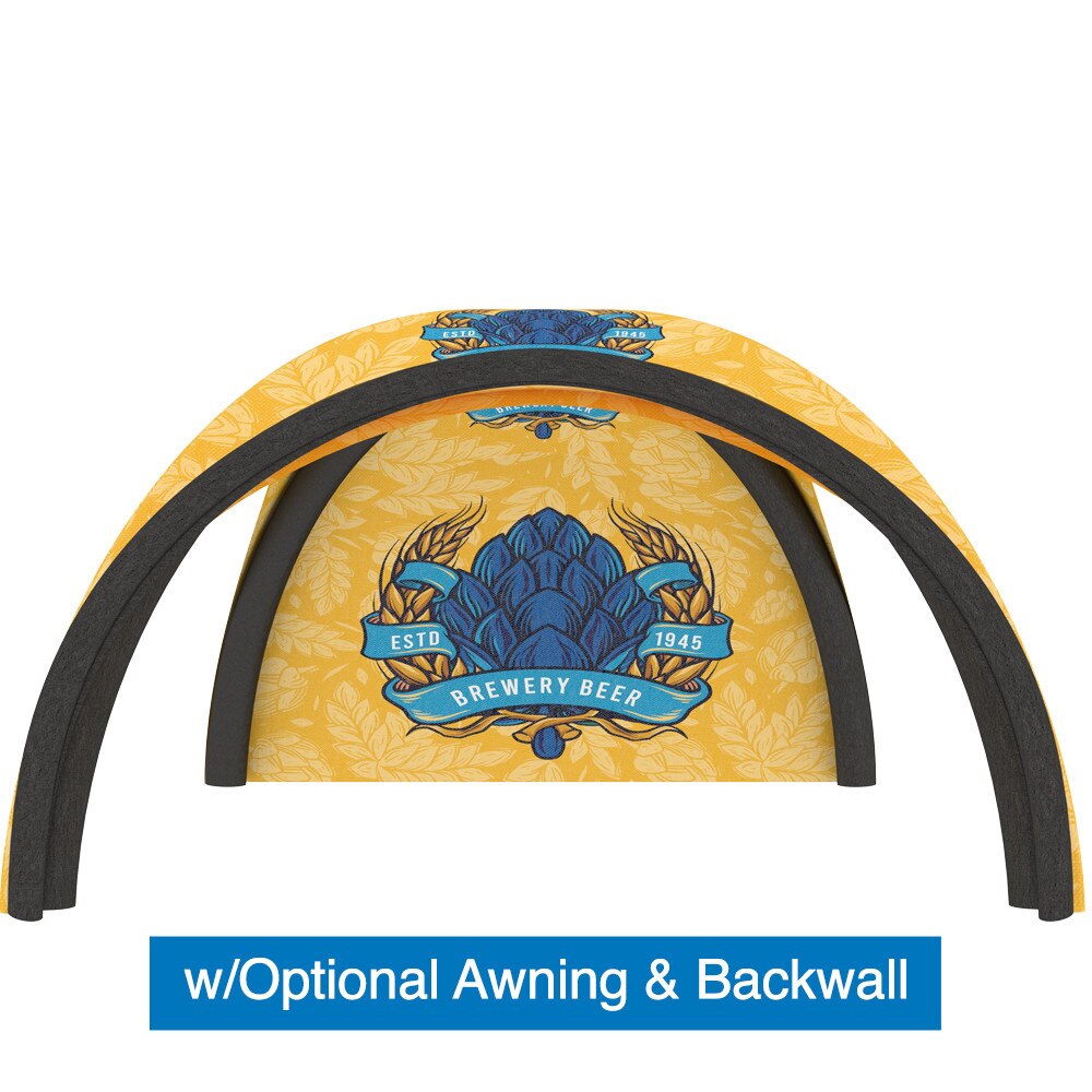 Enhance your tent with optional backwalls and awnings for added functionality and style. Choose from full backwalls, backwalls with windows, or ones with zippers for convenient access. All backwalls are available with single or double-sided graphics to suit your branding needs. The optional awning, which also includes an inflatable bladder frame and support rods, ensures stability and can even connect two tents side by side with a connecting awning.