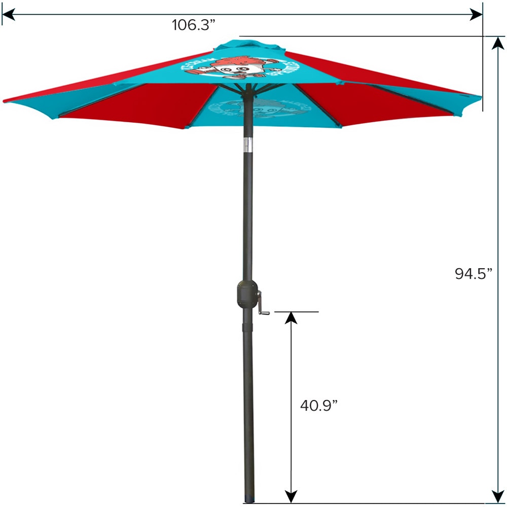 Create the perfect shade for your patio, garden, deck, pool or beach adventure with our 9ft Umbrella. Customize your umbrella top with a custom dye -sub printed graphic. Aluminum construction and anti rust powder coating provides the durability needed for outdoor use. Crank operated opening and closure makes for easy set up and take down. The push button tilt feature allows for 45 degree of tilt to ensure it casts shade where you need it. We recommend collapsing the umbrella and bringing it inside during heavy wind and rain.