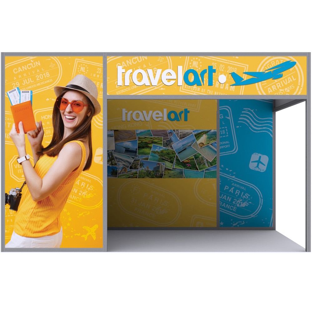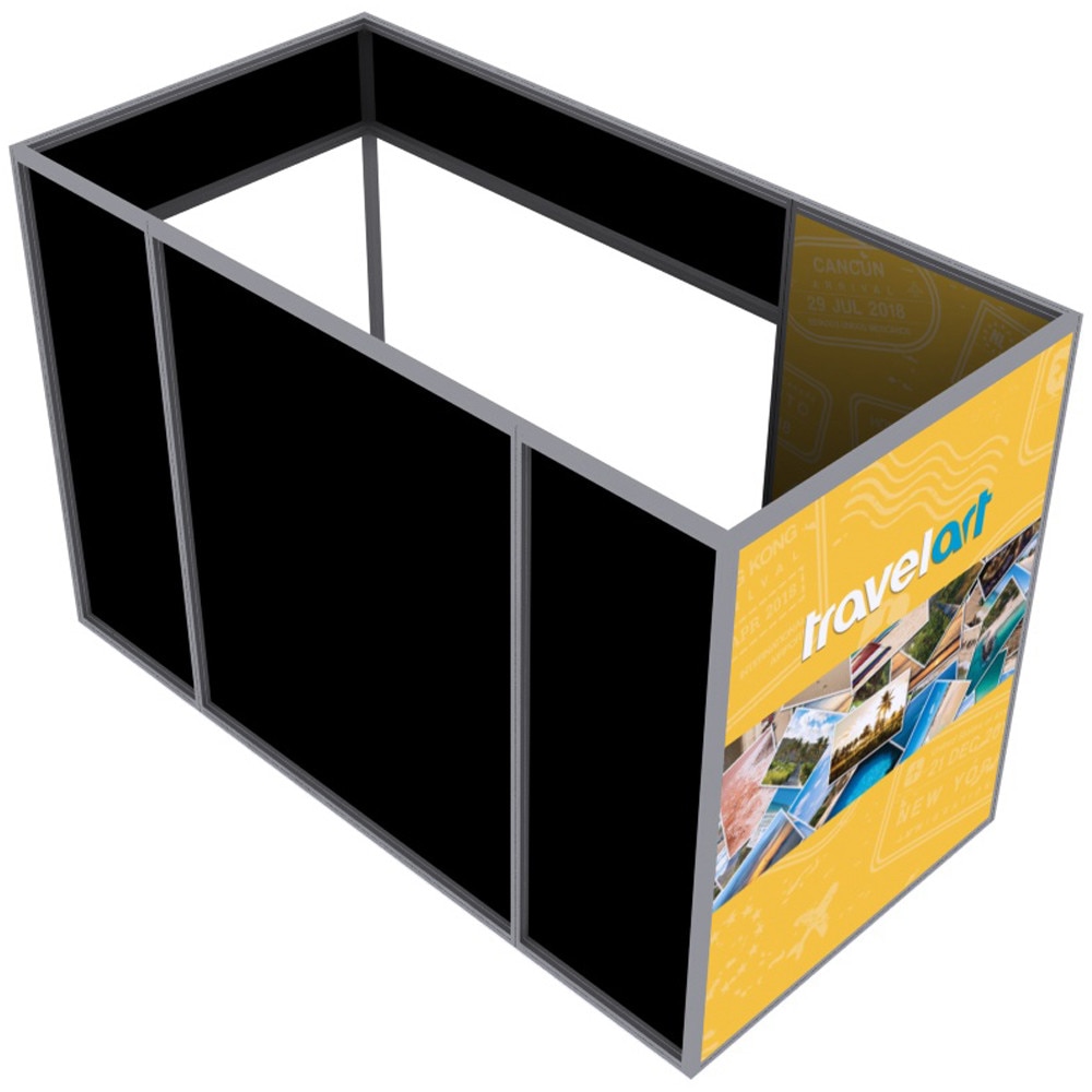 The Cabo aluminum extrusion profile system is an elegant and versatile solution for all of your display needs. Featuring a sleek silver anodized finish, the Cabo is the perfect solution for tradeshow booths, retail environments, pop up shops, or any place aluminum framing is needed. The profiles are available in standard 40mm and 80mm profile widths and in different shapes allowing you to turn your display vision into reality. Promote your company, new products, etc with custom dye sublimated fabric graphics. 12mm x 3mm silicone beading (SEG) is sewn around the perimeter of each fabric panel for easy installation and removal of your graphics. Choose from one of our predesigned configurations or contact us for a quote on something totally custom.
