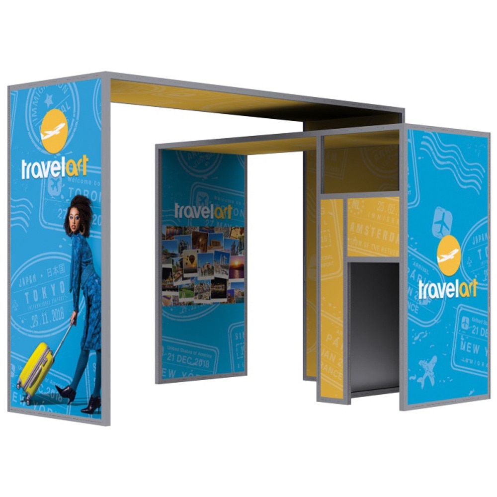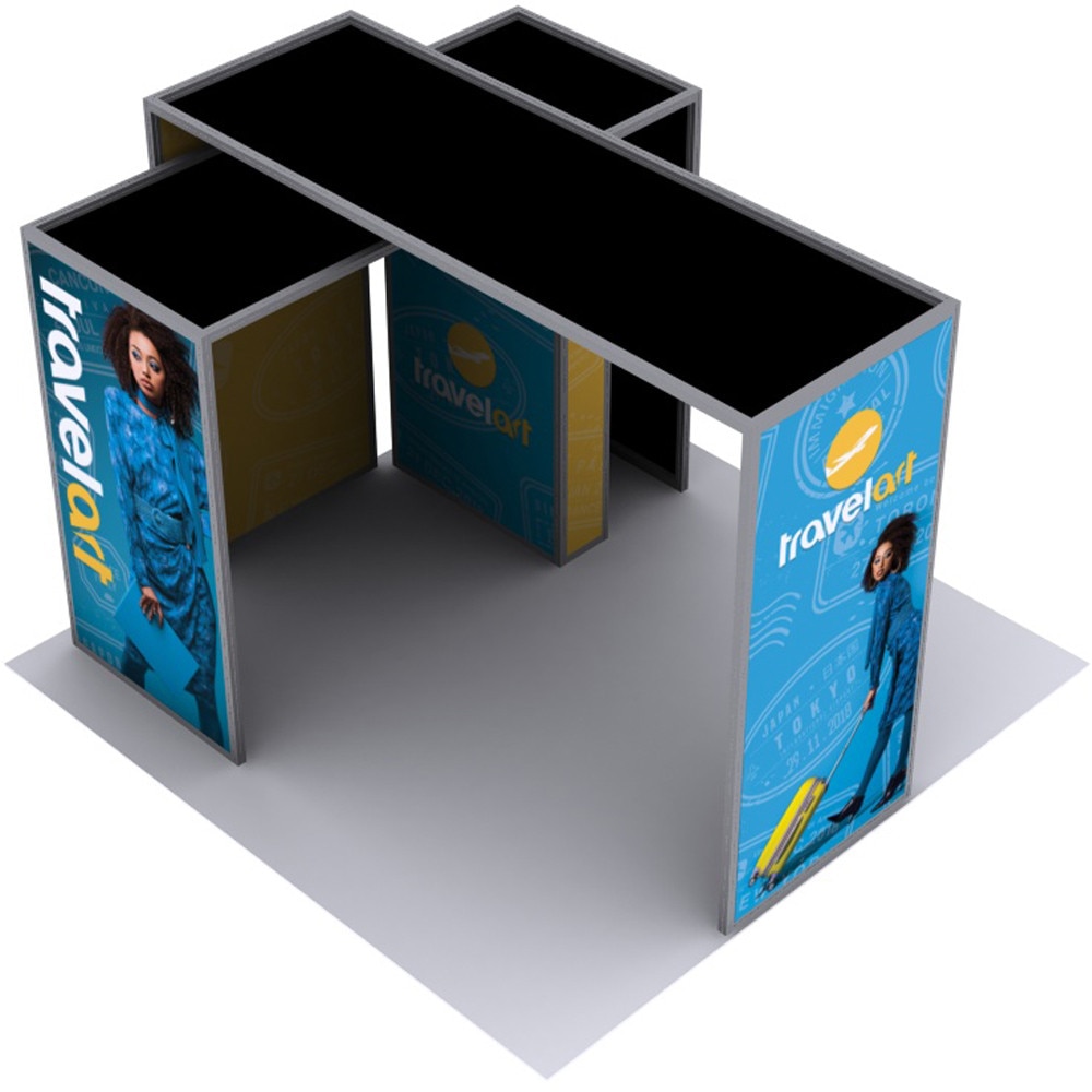 The Cabo aluminum extrusion profile system is an elegant and versatilesolution for all of your display needs. Featuring a sleek silver anodizedfinish, the Cabo is the perfect solution for tradeshow booths, retaienvironments, pop up shops, or any place aluminum framing is neededThe profiles are available in standard 40mm and 80mm profile widthsand in different shapes allowing you to turn your display vision intoreality. Promote your company, new products, etc with custom dyesublimated fabric graphics. 12mm x 3mm silicone beading (SEG) issewn around the perimeter of each fabric panel for easy installationand removal of your graphics. Choose from one of our pre designedconfigurations or contact us for a quote on something totally custom.