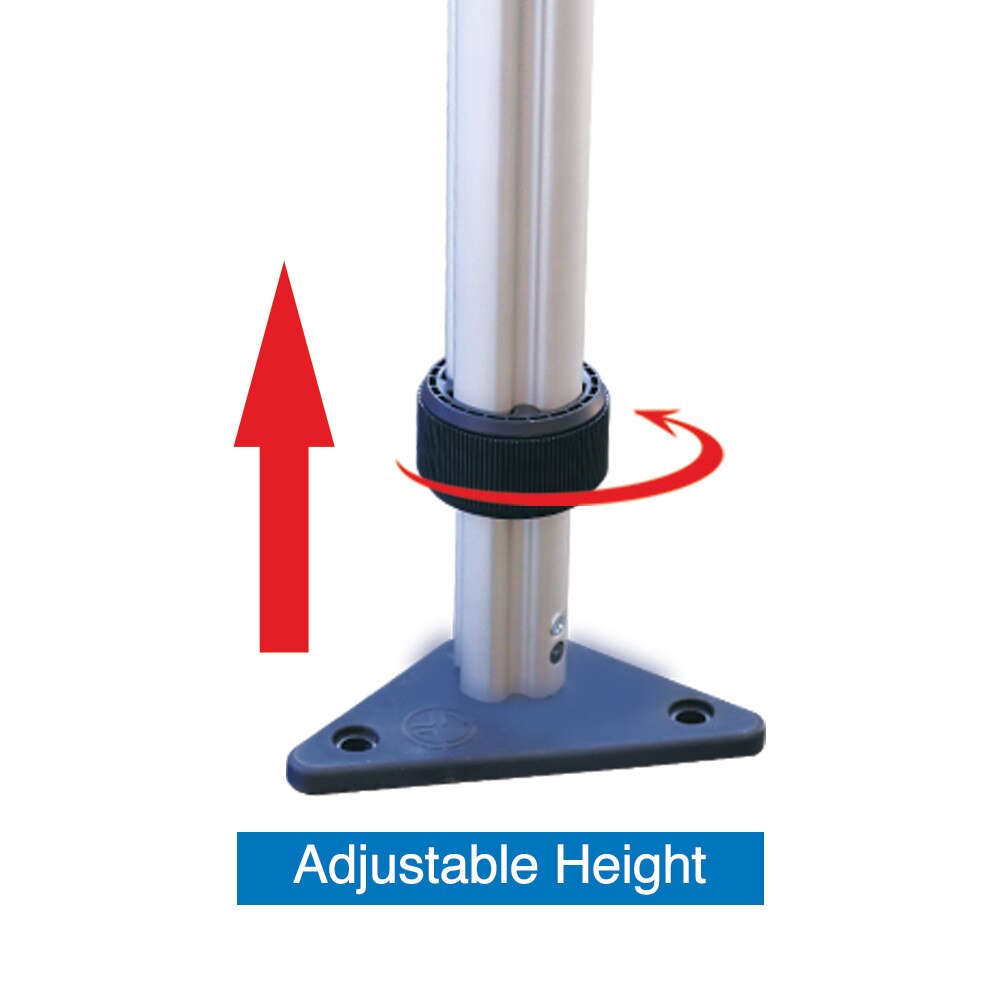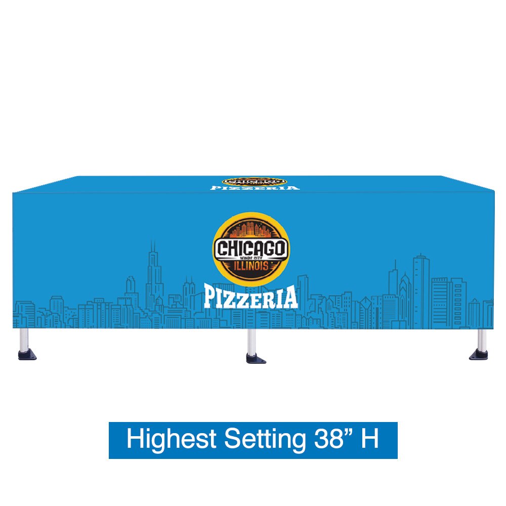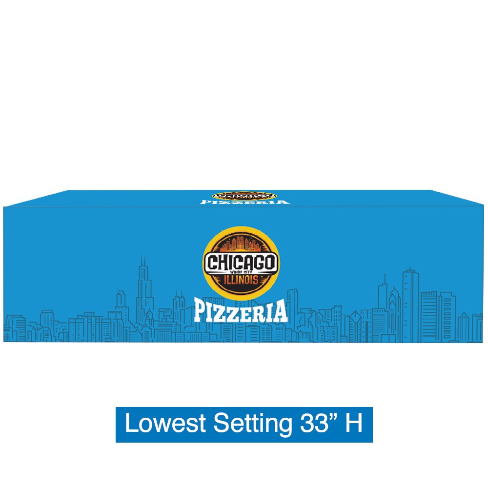 For easy transport, the table comes with a convenient travel bag. Enhance your presentation with an optional fitted table throw, made from dye sublimation tent material, designed to perfectly match your Casita® Canopy graphic. The table throw fits snugly at 33” height and serves as a shorter cover for the mid and highest settings. Ideal for both indoor and outdoor use, the Casita® Mesa combines functionality with a professional appearance, making it a perfect choice for any setup.