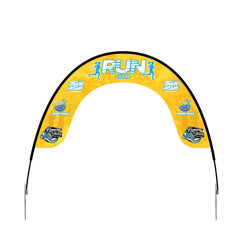 Introducing the Falcon Flag® Archway, the latest addition to the Falcon Flag® lineup. Engineered with durable carbon composite poles—the same reliable material used in Falcon and Sunbird flag poles—this large archway option provides an impressive visual statement for both outdoor and indoor events. Spanning a generous 177" wide by 122" high (not including base height), the Falcon Archway captures attention with custom single-sided dye sublimated graphics on high-quality mesh fabric, offering vivid colors and excellent durability in various conditions. Designed to integrate seamlessly with the versatile X-base and spike base options, it ensures stability on different surfaces. The Falcon Flag® Archway is easy to transport and set up, featuring a travel bag that conveniently holds the poles, graphic, and base for enhanced portability.
