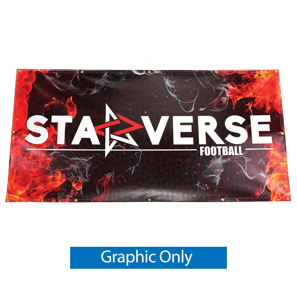 - Scrim Banners: Your graphics are UV printed on scrim vinyl with a 1” double stitch hem around the perimeter to reinforce the material. #2 grommets are added along the top, bottom and sides that enable an easy graphic install with the use of bungee hooks that are included with each frame. Frame assembly is simple and sets up in minutes without the need for tools.