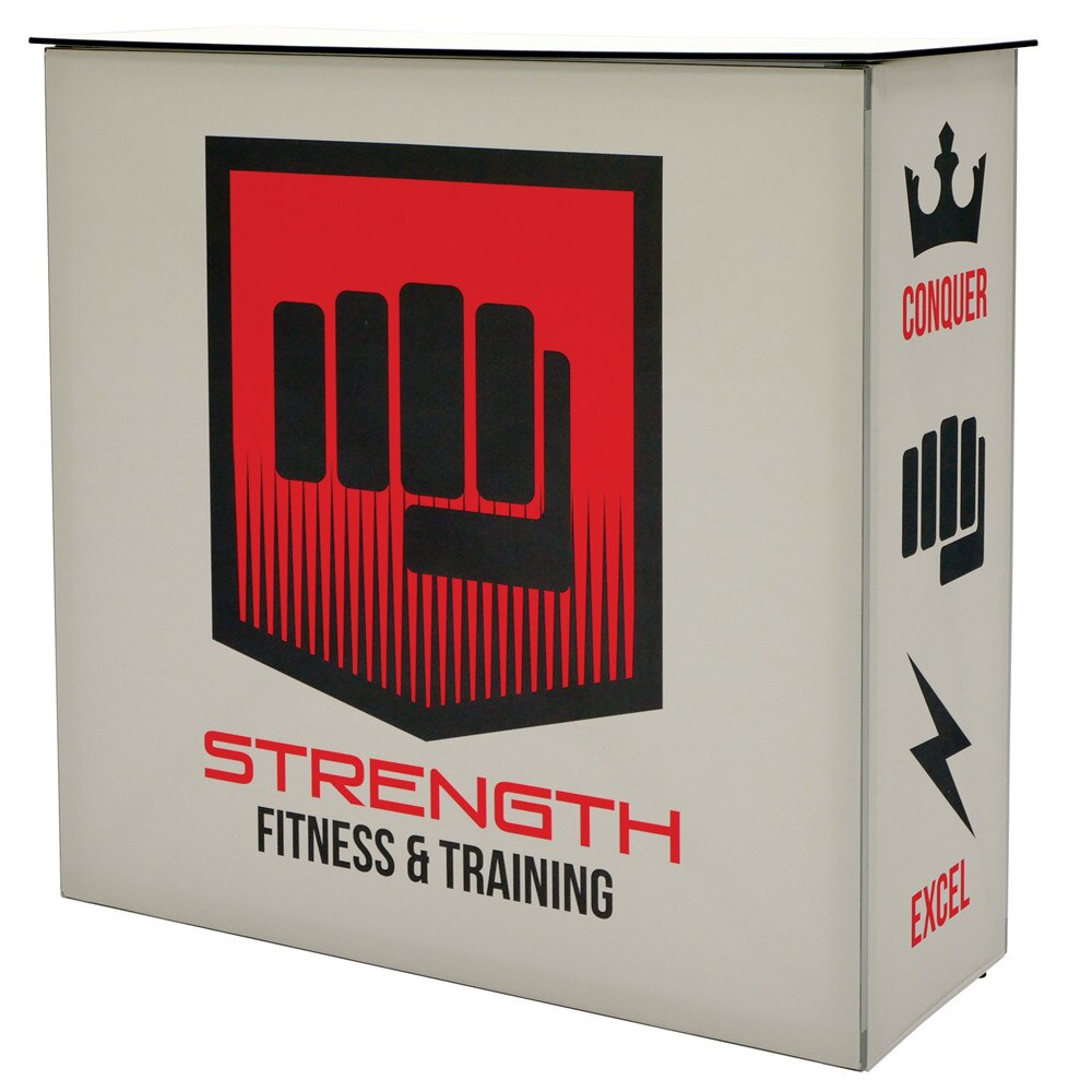 Accentuate your Lumere Light Wall with the Lumere Counter! A new counter design, the Lumiere is a pop up frame made for SEG fabric graphics. Choose 3 custom dye sub graphics: 1 front and 2 end caps. Backside remains open for included shelf and storage. Includes carry bag.