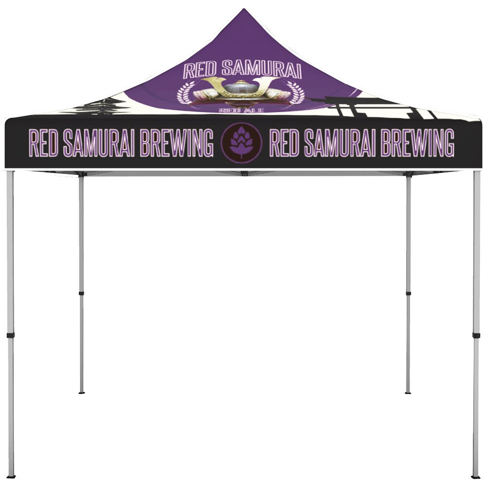 One Choice® Aluminum Canopy Tent has you covered! Portable 10' x 10' aluminum canopy provides ample shade on sunny days. Personalize your canopy with a fully customizable dye-sub print.