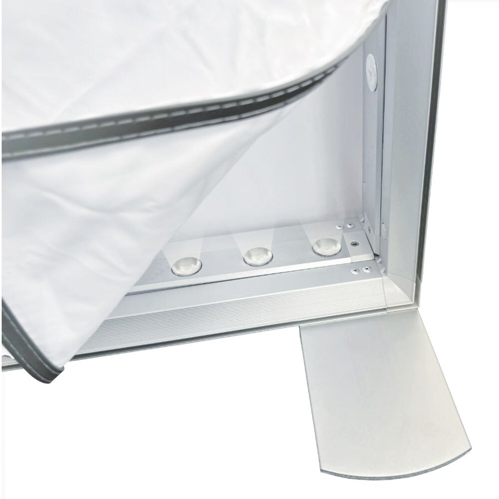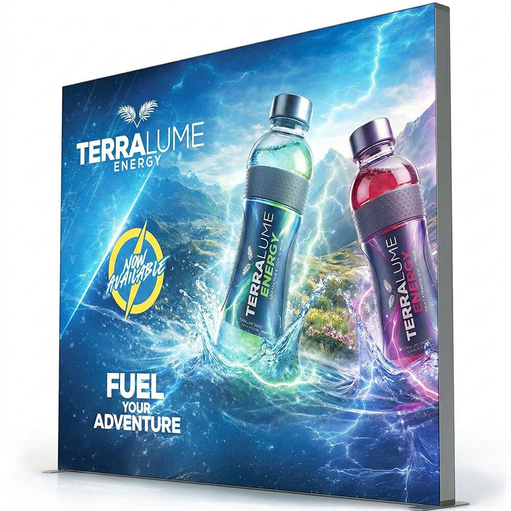 The Showbird 120 is a premium modular lightbox display system designed to deliver bold, evenly illuminated graphics with maximum flexibility. Built with 120mm wide anodized silver aluminum extrusion profiles, this system features LED edge lighting integrated into both the top and bottom frame profiles, creating vibrant, high-impact backlit visuals. The Showbird 120 displays dye sublimated backlit fabric graphics with SEG (silicone edge graphic) finishing, ensuring a smooth, wrinkle-free presentation suitable for trade shows, retail environments, and branded interiors.