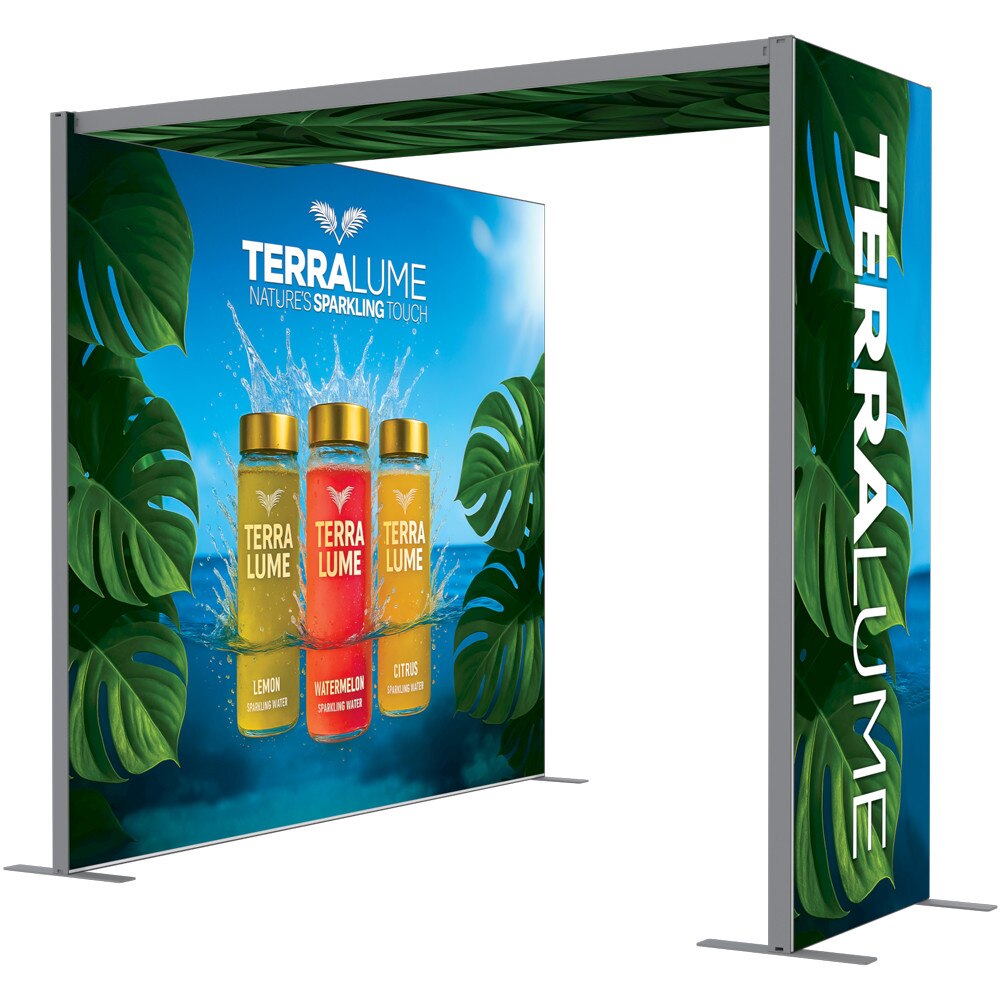 - Brilliant Backlit Visuals - The Showbird 65 delivers vivid, high-resolution messaging with dye sublimated fabric graphics finished with SEG (silicone edge graphic) technology. The front-facing graphic is backlit by internal LED ladder lights mounted on a blockout SEG panel, ensuring vibrant illumination and visual impact. The backside features two SEG channels—an inner channel for the light panel and an outer channel for an optional non-backlit graphic, allowing for single or double-sided presentations.
