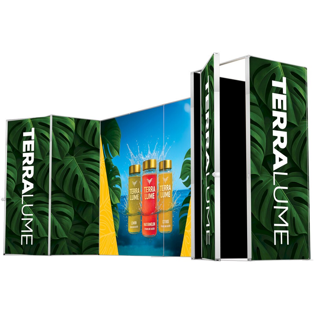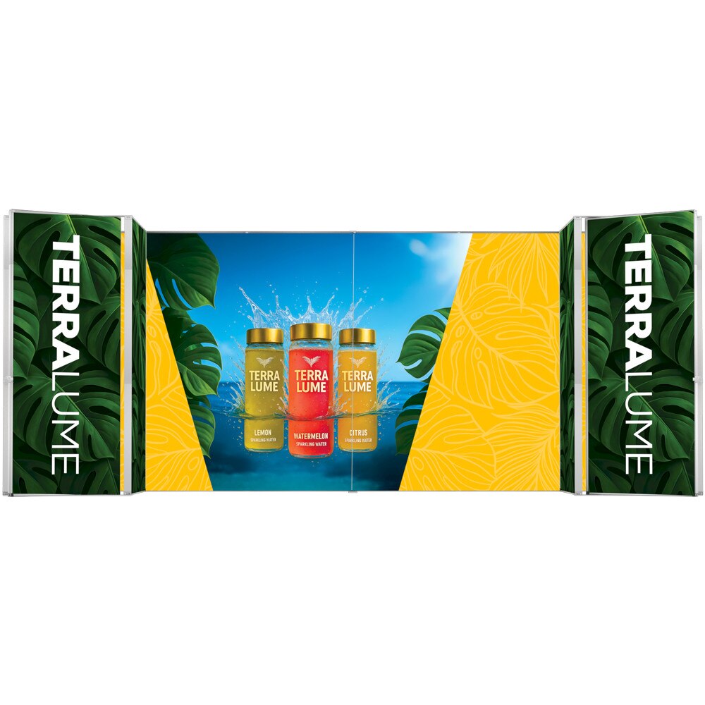 The Showbird 65 delivers vivid, high-resolution messaging with dye sublimated fabric graphics finished with SEG (silicone edge graphic) technology. The front-facing graphic is backlit by internal LED ladder lights mounted on a blockout SEG panel, ensuring vibrant illumination and visual impact. The backside features two SEG channels—an inner channel for the light panel and an outer channel for an optional non-backlit graphic, allowing for single or double-sided presentations.
