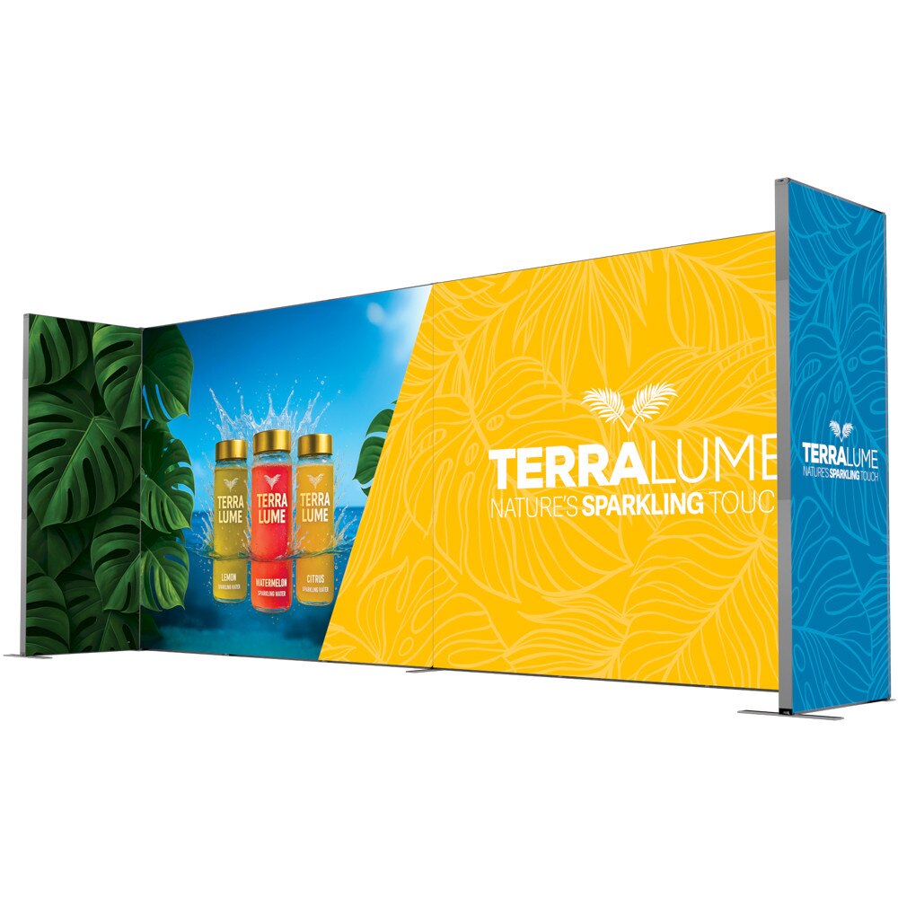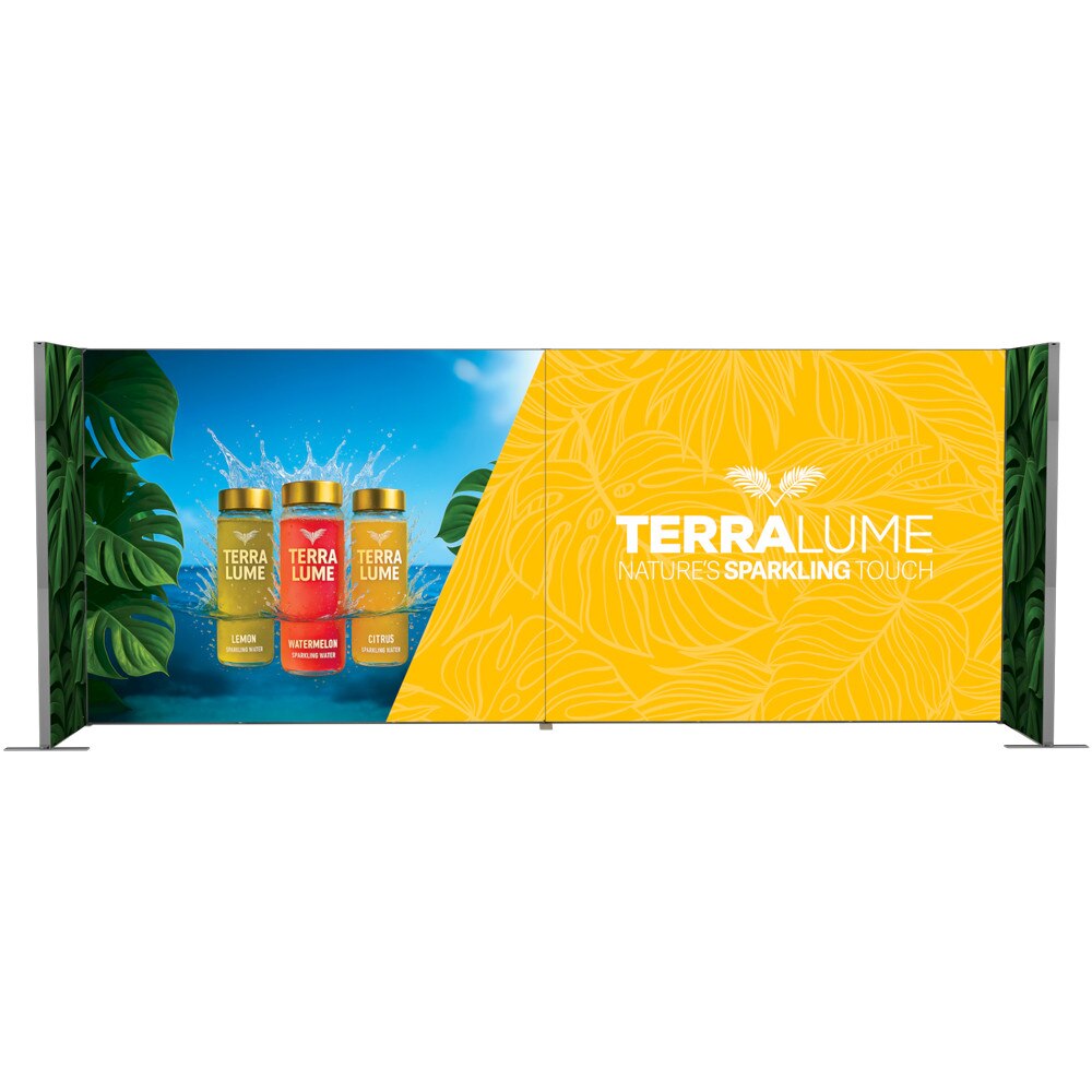 The Showbird 65 delivers vivid, high-resolution messaging with dye sublimated fabric graphics finished with SEG (silicone edge graphic) technology. The front-facing graphic is backlit by internal LED ladder lights mounted on a blockout SEG panel, ensuring vibrant illumination and visual impact. The backside features two SEG channels—an inner channel for the light panel and an outer channel for an optional non-backlit graphic, allowing for single or double-sided presentations.