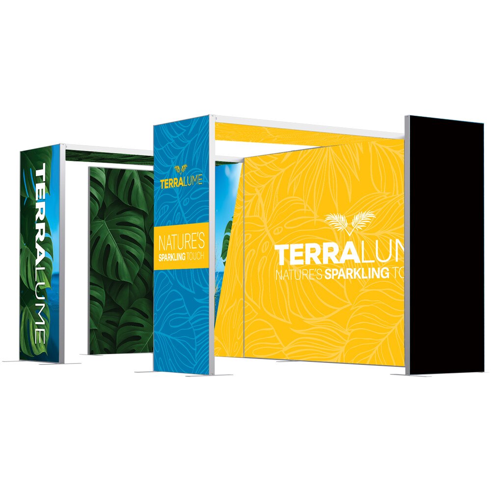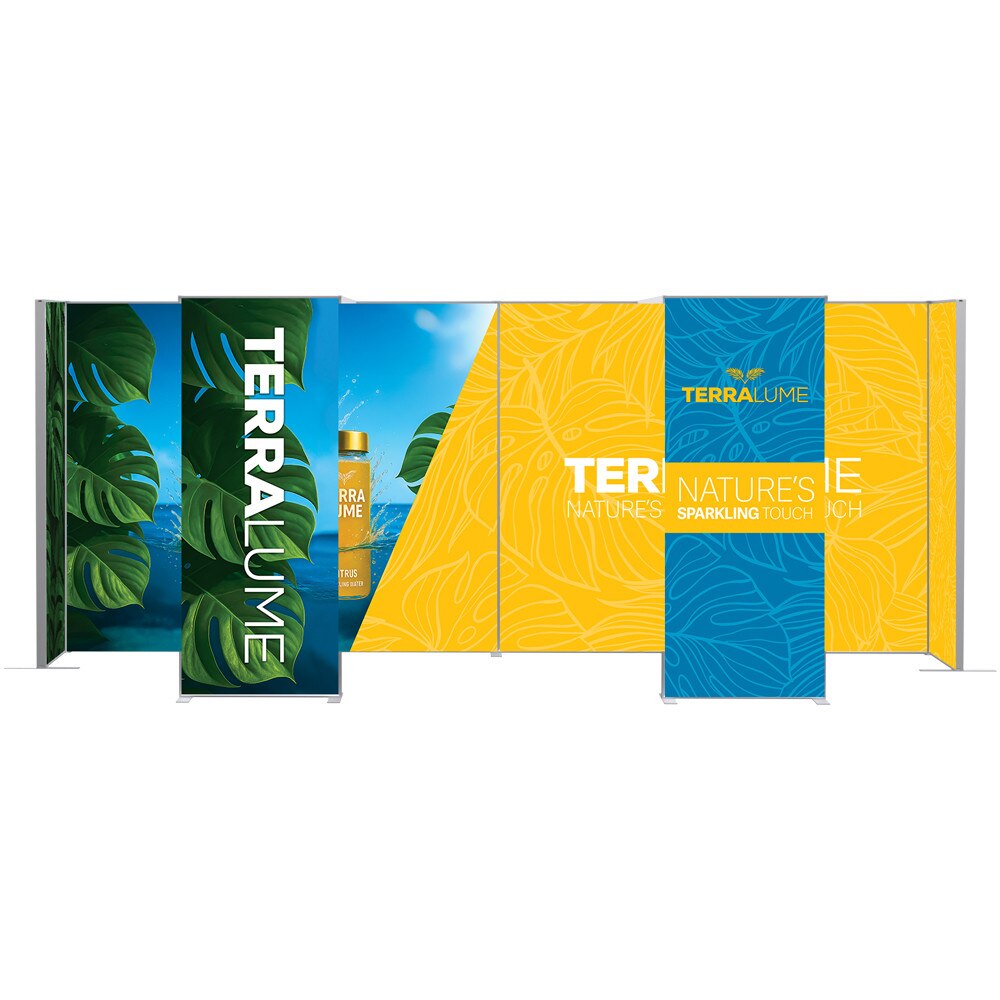 The Showbird 65 delivers vivid, high-resolution messaging with dye sublimated fabric graphics finished with SEG (silicone edge graphic) technology. The front-facing graphic is backlit by internal LED ladder lights mounted on a blockout SEG panel, ensuring vibrant illumination and visual impact. The backside features two SEG channels—an inner channel for the light panel and an outer channel for an optional non-backlit graphic, allowing for single or double-sided presentations.