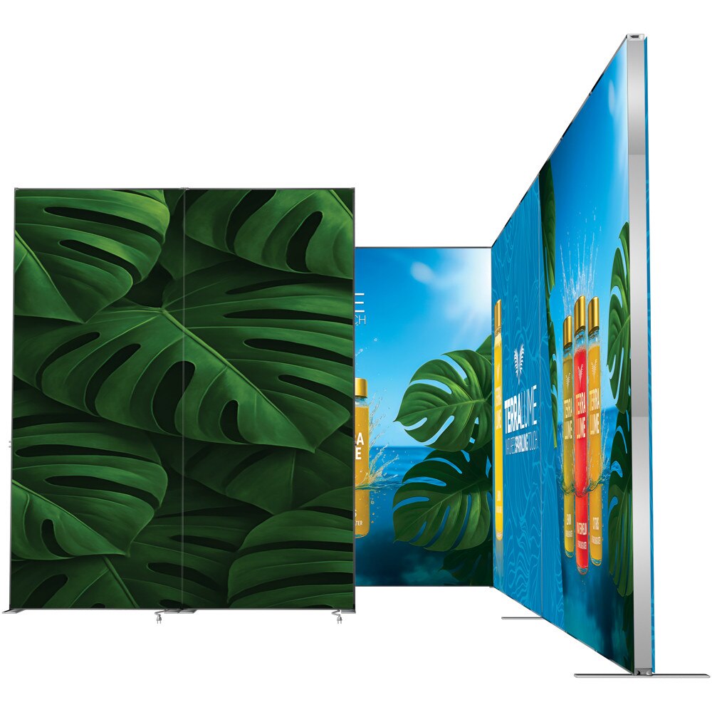 - Brilliant Backlit Visuals - The Showbird 65 delivers vivid, high-resolution messaging with dye sublimated fabric graphics finished with SEG (silicone edge graphic) technology. The front-facing graphic is backlit by internal LED ladder lights mounted on a blockout SEG panel, ensuring vibrant illumination and visual impact. The backside features two SEG channels—an inner channel for the light panel and an outer channel for an optional non-backlit graphic, allowing for single or double-sided presentations.