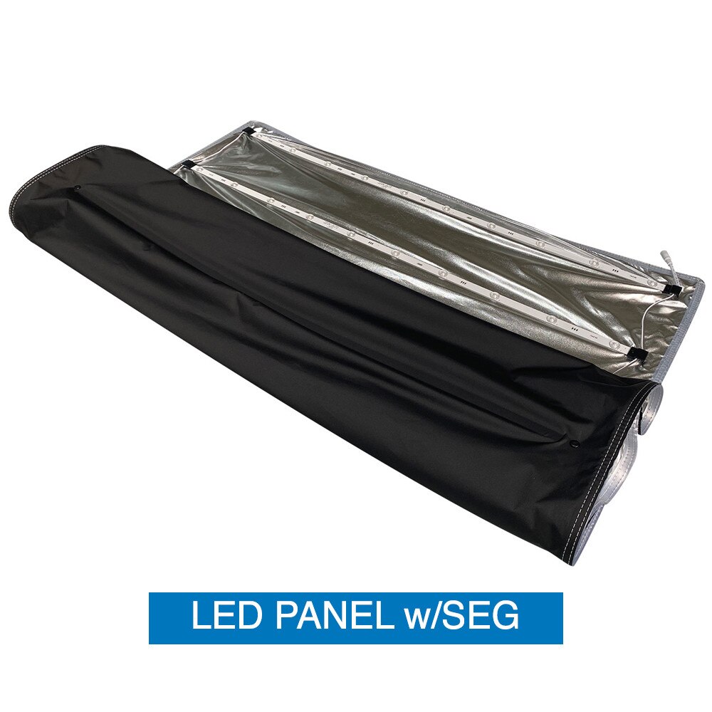 - Brilliant Backlit Visuals - The Showbird 65 delivers vivid, high-resolution messaging with dye sublimated fabric graphics finished with SEG (silicone edge graphic) technology. The front-facing graphic is backlit by internal LED ladder lights mounted on a blockout SEG panel, ensuring vibrant illumination and visual impact. The backside features two SEG channels—an inner channel for the light panel and an outer channel for an optional non-backlit graphic, allowing for single or double-sided presentations.