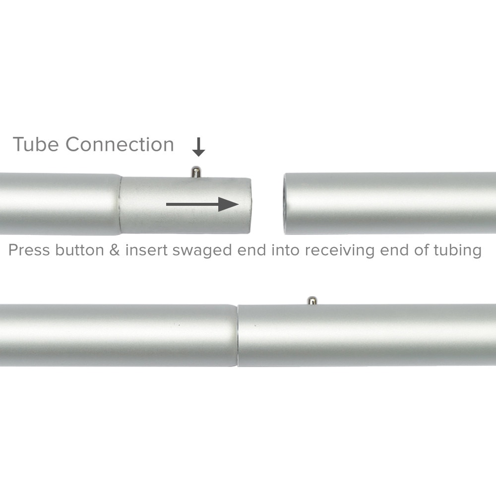 The Wallbox 5ft boasts a sleek tubular design, featuring a 30mm diameter with an elegant anodized silver finish. Its tool-free assembly system, enabled by spring push-button connections, ensures hassle-free setup, allowing you to focus on your presentation with ease.