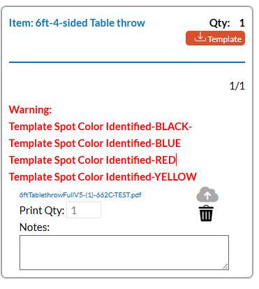 After you upload your artwork, you’ll now see a notification showing which template colors were detected in your file. This way, you’ll know right away if anything needs to be removed before approving.